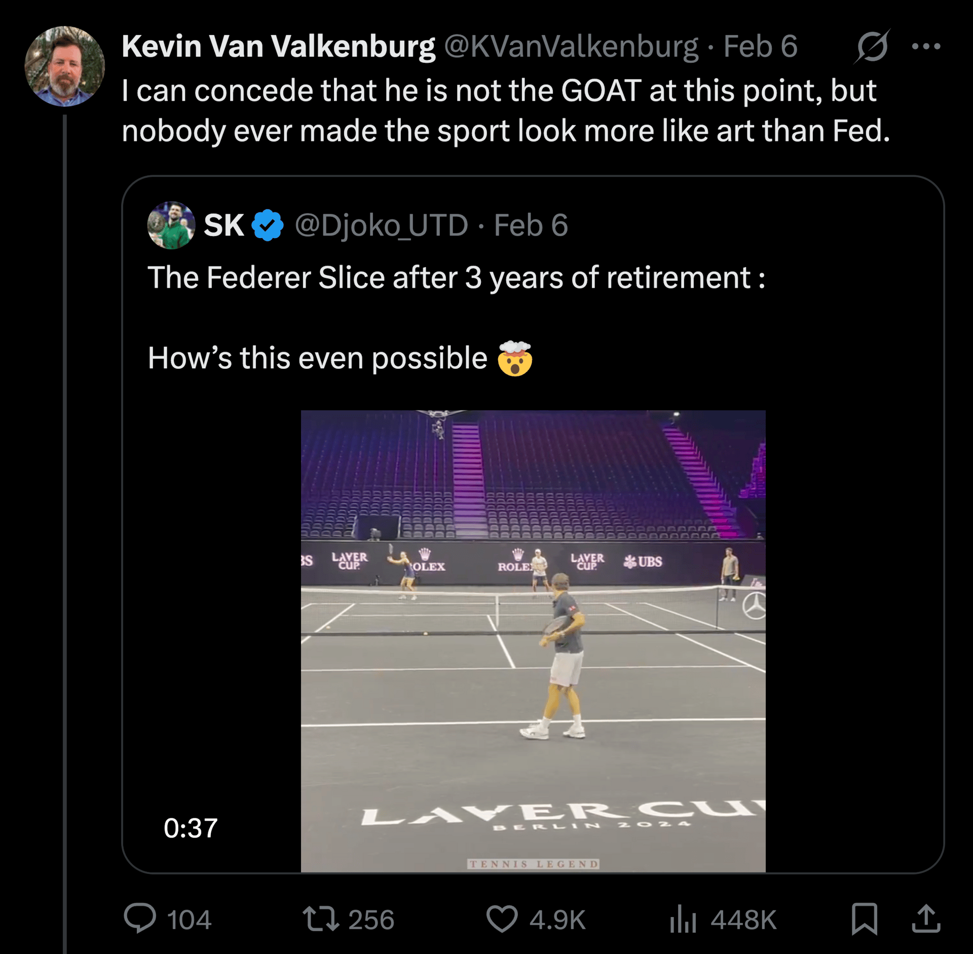 4. Roger (quietly) didn’t win much after age 30. This is normal, but also it’s apparently not normal compared to his peers. Also, I ride with KVV. Fed is somehow not the goat (and maybe not even second), but he’s my goat because few things in sport have ever felt like you were experiencing beauty more than watching him play tennis.
