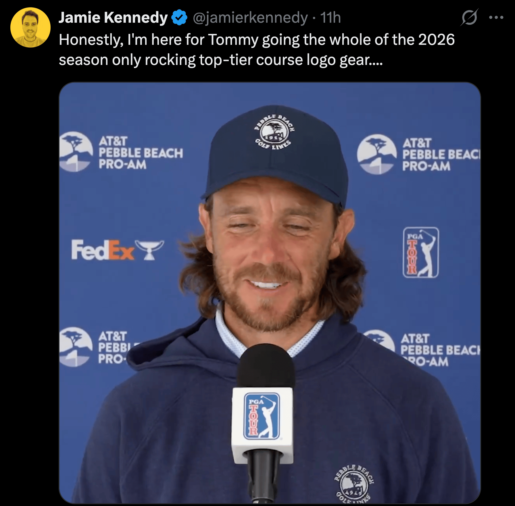 It would be both enedearing and hilarious to keep track of which pro shop gear Tommy is wearing this year. Oh, there’s Tommy in the umbrella logo in Florida. Oh there he is with a commercial insurance logo in Connecticut.